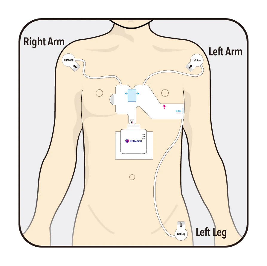 - Electrode strip: single-use pre-positioned 12-lead layout